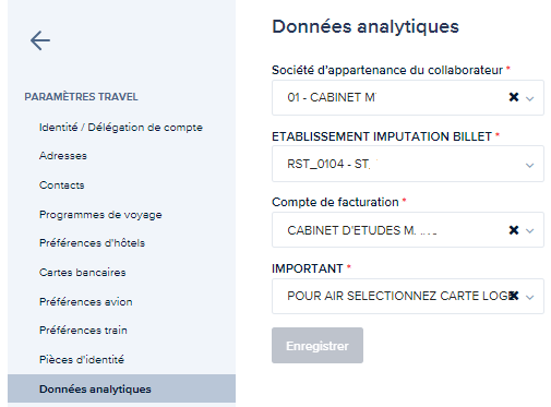 Les données analytiques correspondent aux champs comptables que votre société a souhaité mettre en place.