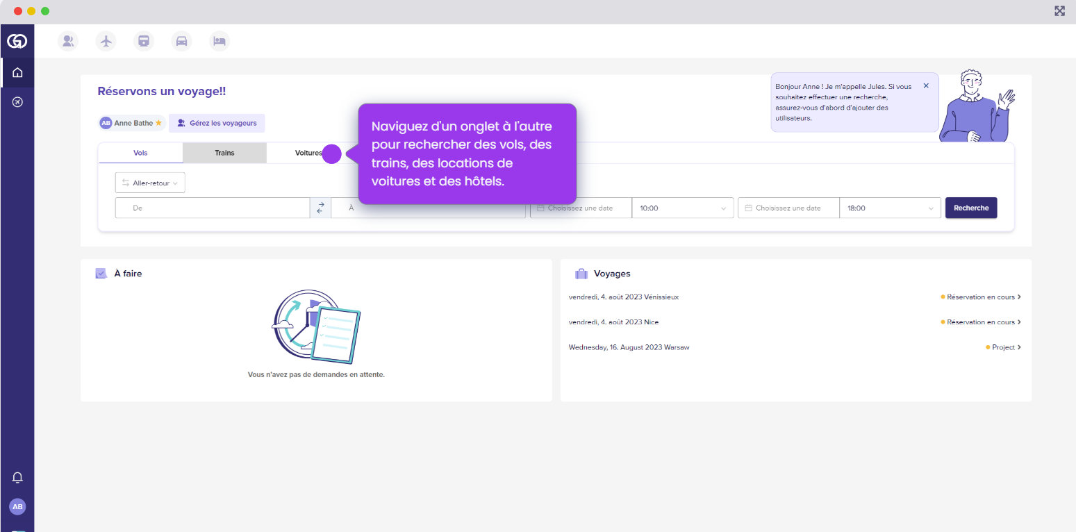 Depuis le module "Recherche rapide" effectuer une réservation multi-voyageurs (scénario animé) Thierry KLEIN 27 septembre 2024 09:48 Mise à jour Découvrez la recherche rapide la réservation multi-voyageurs Associé à réservation Recherche rapide Commentaires 0 commentaire Vous devez vous connecter pour laisser un commentaire.