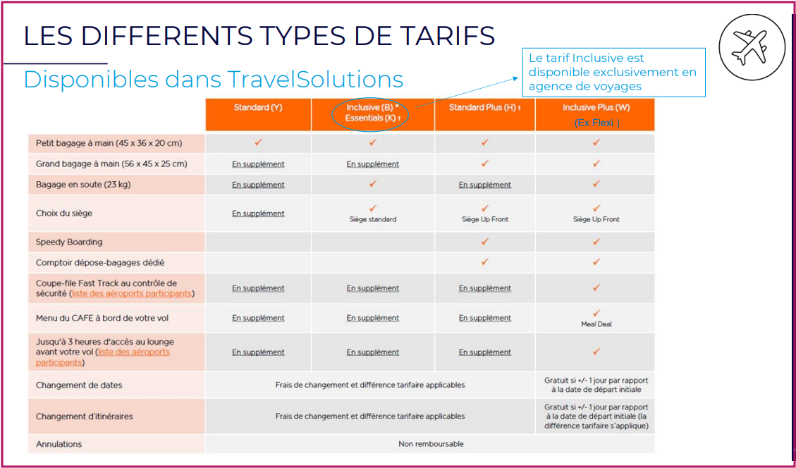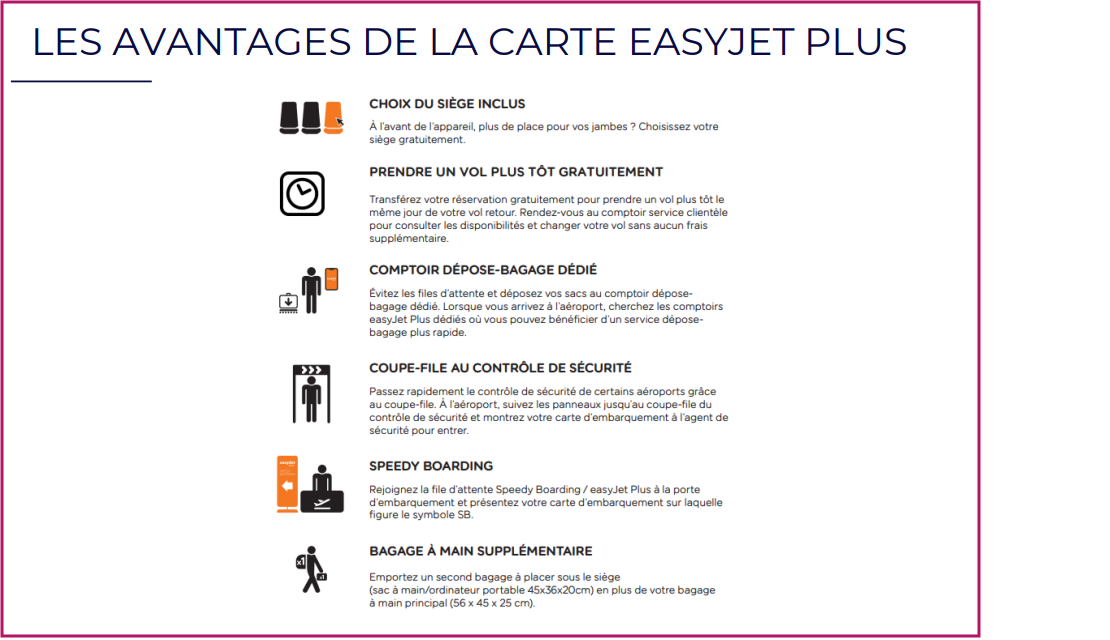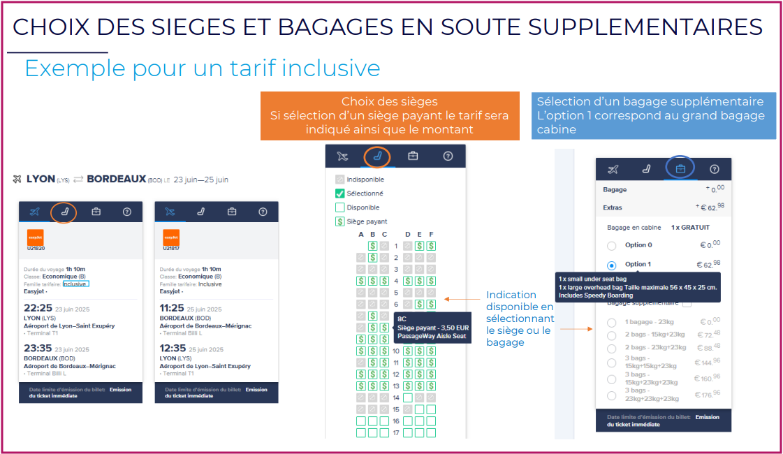 EASYJET - Offre tarifaire, choix de siège, ajout de bagages